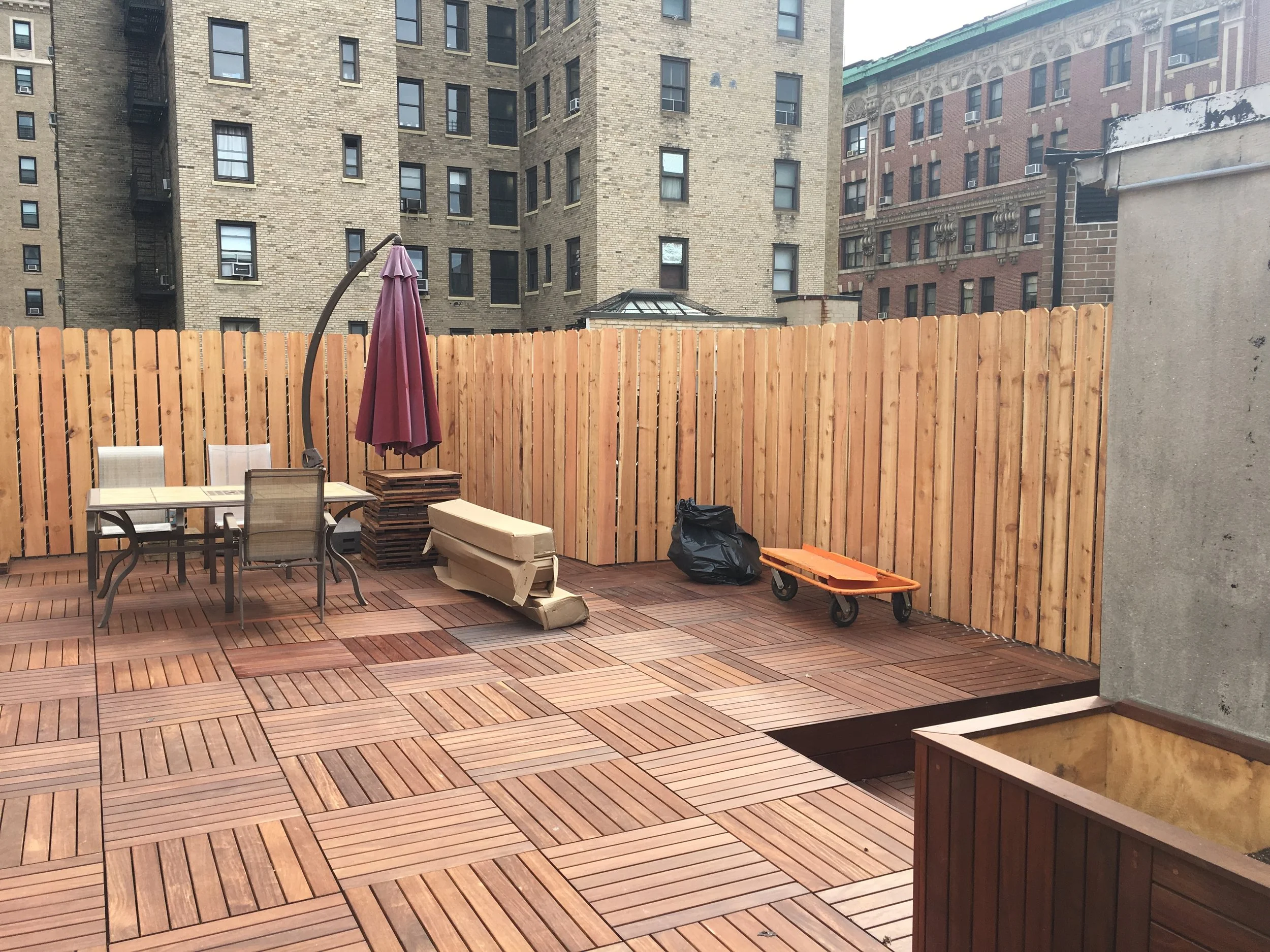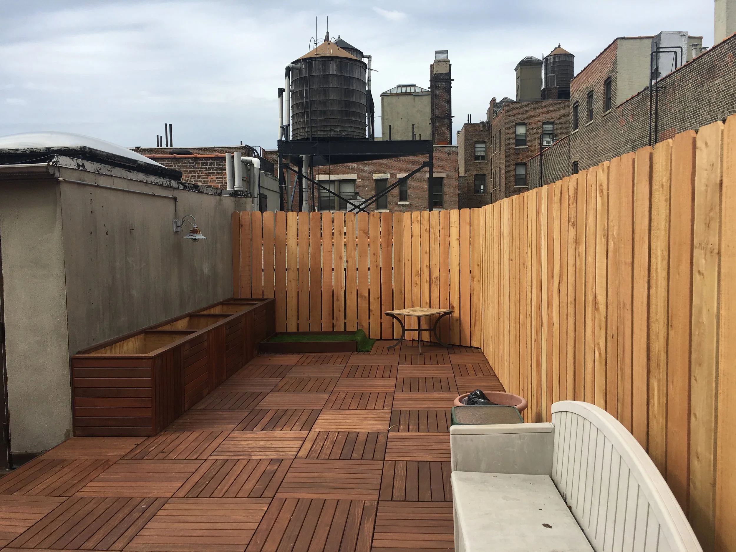 Our client’s rooftop experience was elevated with our custom-built garden boxes, designed to bring a touch of nature to the gritty city. These garden boxes were custom-made to fit as needed in the rooftop space, allowing our client’s family to cultivate a personal garden oasis. Our design incorporates rugged materials and a smart drainage solution.